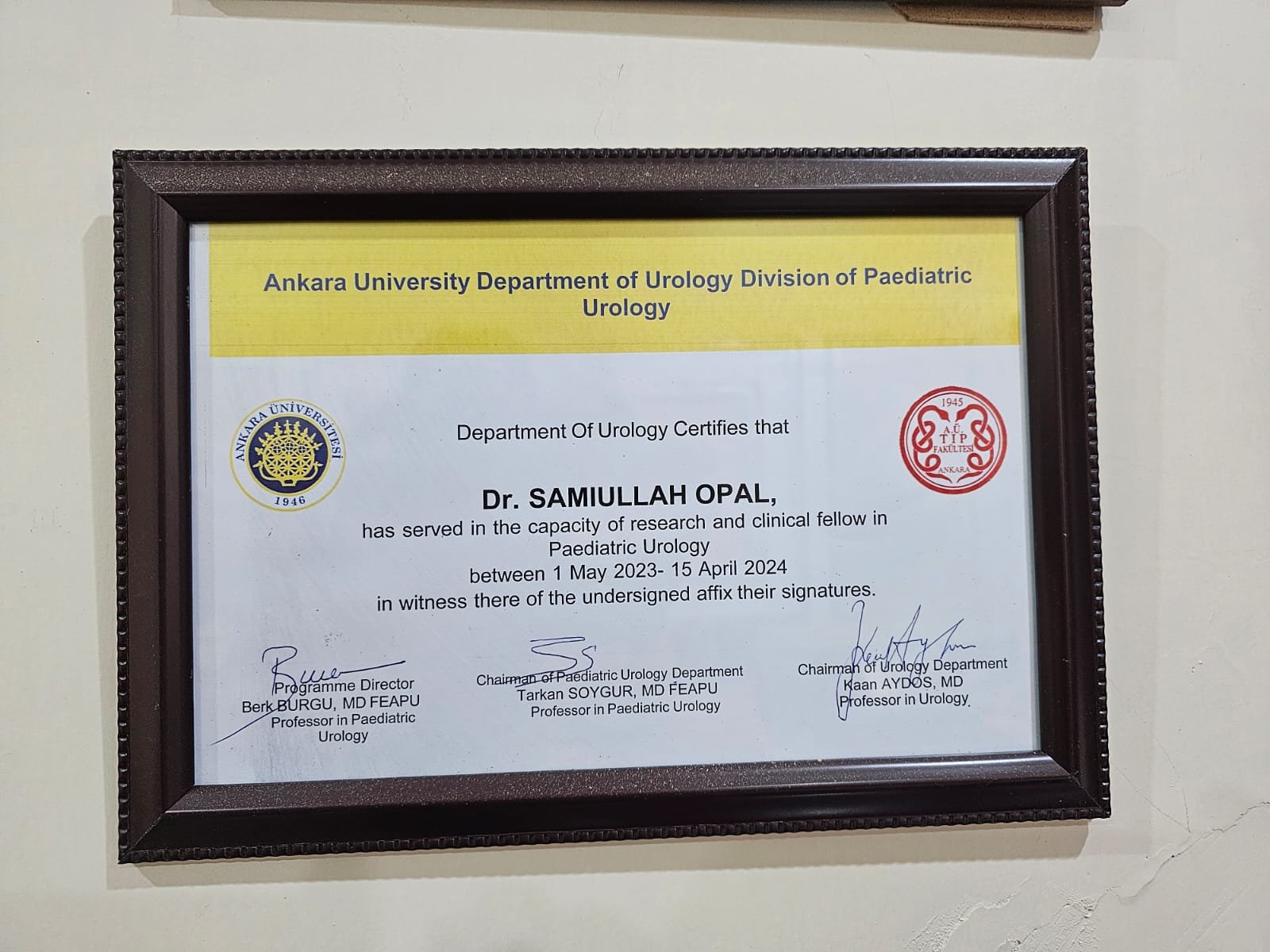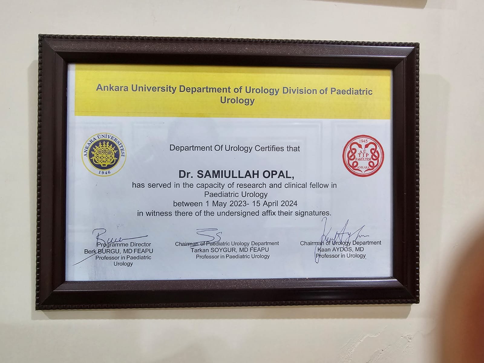 Driven by a commitment to international standards, Dr. OPAL pursued an advanced Fellowship in Paediatric Urology from Ankara University, Turkey — a European Board-recognized institution for postgraduate training in the specialty. He then sat for and successfully passed the highly competitive FEAPU (Fellow of the European Academy of Paediatric Urology) examination in Belgium, earning one of the most respected certifications in pediatric urology worldwide.
